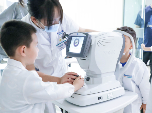 欧普康视眼健康科普基地利用周末及寒暑假开展“小小眼科医生”特色亲子活动,扩大科普基地影响力,提升眼科品牌宣传。由专业的眼科医务人员指导大家完成视力检查、电脑验光、眼压检查等多项眼健康检查实践活动,体验一名眼科医生的工作,强化爱眼护睛的意识。