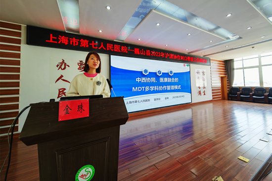 当天欢迎会后,上海市第七人民医院医务处处长金珠和医院党政办主任马慧芬分别以《中西协同、医康融合的MDT多学科协作管理模式》《中西医结合质量管理模式探索》为题就如何进一步加强医院管理,提高医疗质量管理、提升服务意识等方面给大家进行了授课,其它专家分别深入各相关帮扶科室开展教学查房、病例讨论、学科发展等医疗帮扶相关活动。