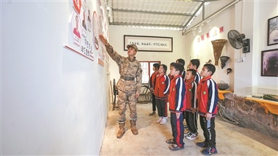 图③:驻军某部官兵为少先队员讲述红色历史,开展爱国主义教育。(■文 雁 张志攀 本报特约记者 冯 强)