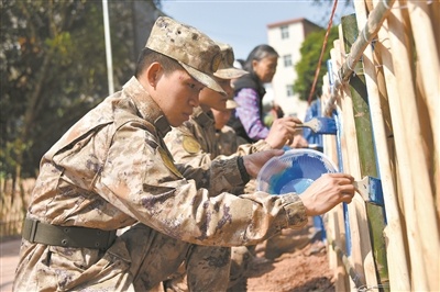 驻军某部官兵发扬拥政爱民传统,以实际行动投身兴边富民实践。