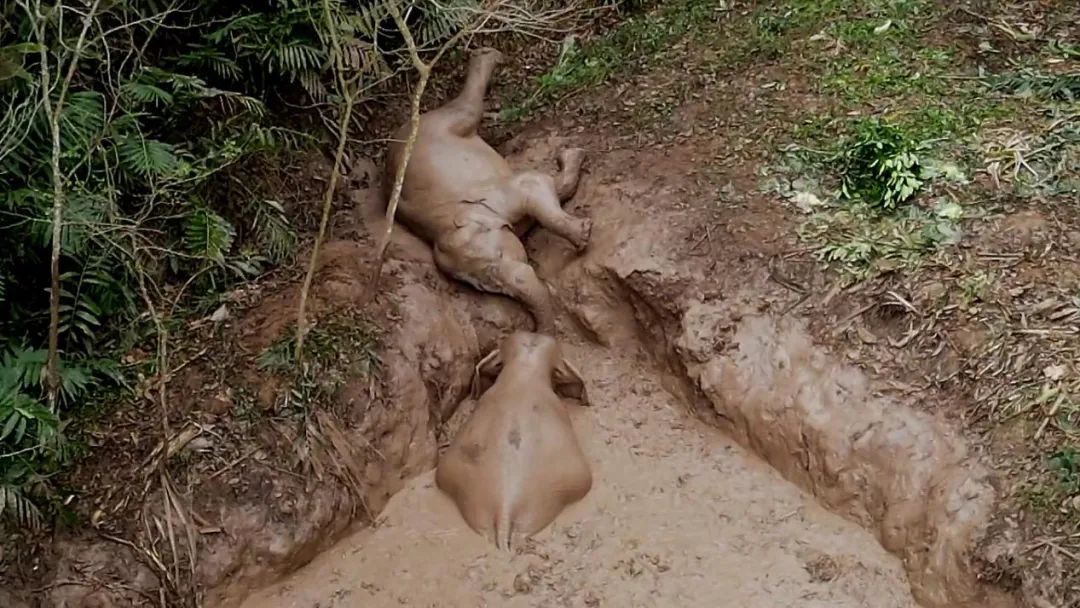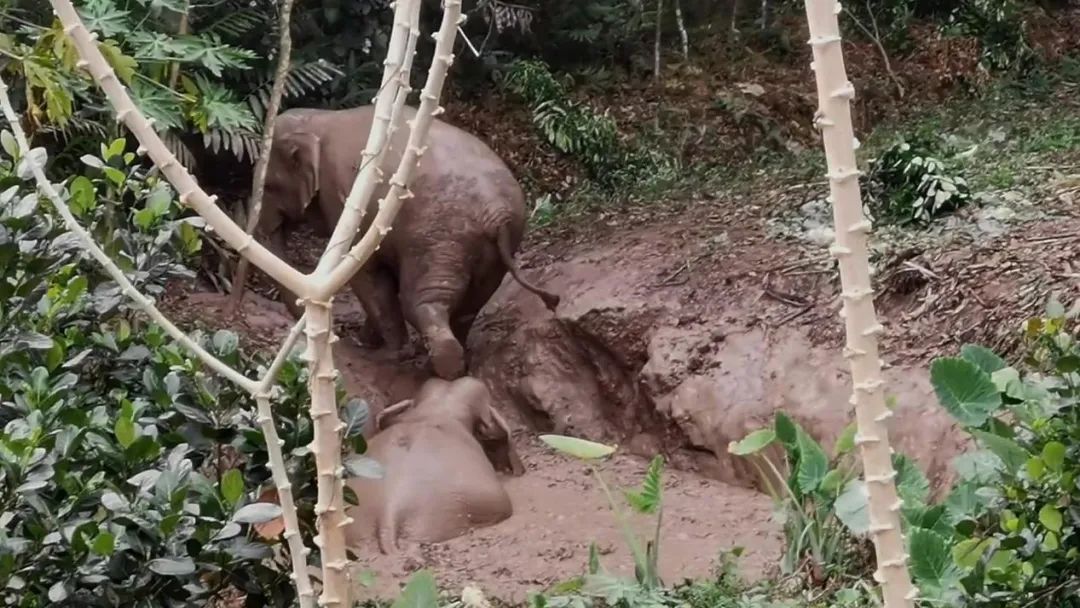 原标题:野生亚洲象坠入深水坑!象救不了,人来了