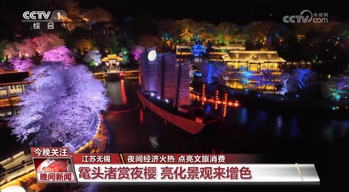 初春的夜晚,位于江苏无锡市太湖北岸的鼋头渚风景区樱花盛放。100多个品种、30多万株樱花在光影交融中如梦似幻,伴随着景观的亮化和水上夜游等活动,将浪漫氛围拉至顶点。