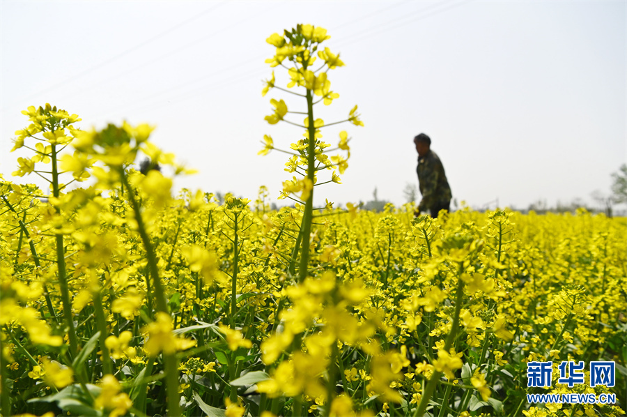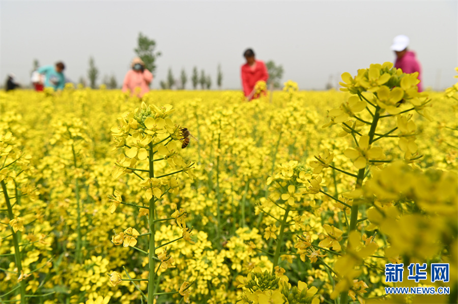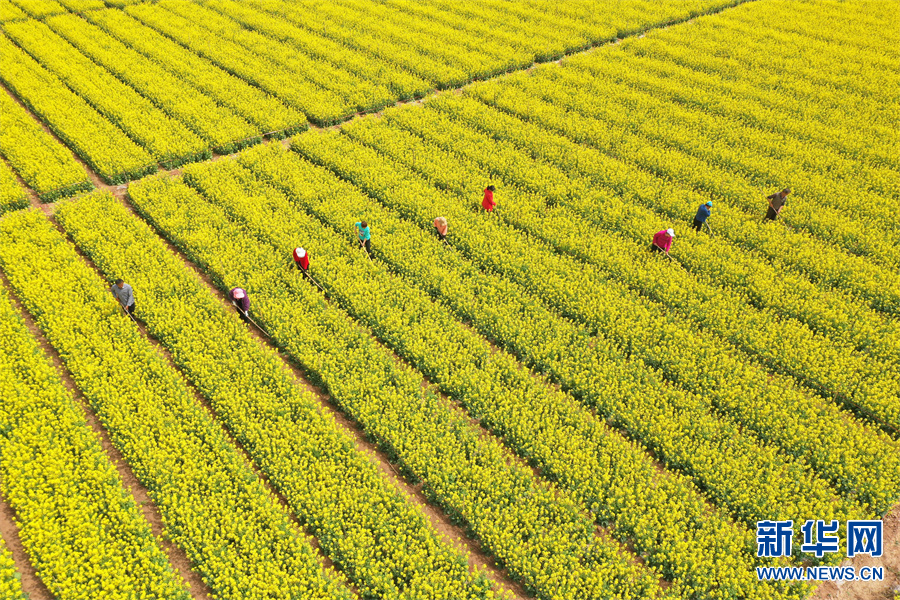时下,春光明媚,万物生长,河南省沁阳市蔬菜制种基地的菜花竞相绽放,农民在花海中进行除草、授粉等工作,一派繁忙景象。