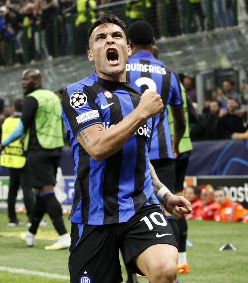 4月19日,国际米兰队球员劳塔罗进球后庆祝。新华社发