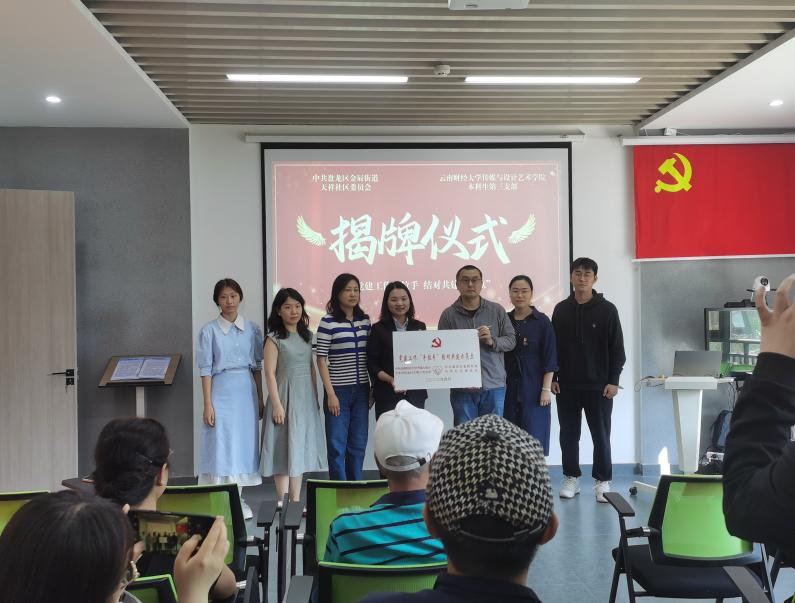 为进一步强化党建工作基础,切实发挥基层党组织共建共驻优势,着力构建“资源融合、优势互补、共建共享”的社校党建共同体,推动党建“融入民生、融入基层、融入人心”,4月24日,金辰街道天祥社区联合云南财经大学传媒与设计艺术学院本科生第三支部在天祥社区党群服务中心举行党建共建揭牌及签约仪式。天祥社区党委书记陆云秋,云南财经大学传媒与设计艺术学院本科生第三支部书记李楠、云南财经大学传媒与设计艺术学院师生代表出席仪式。