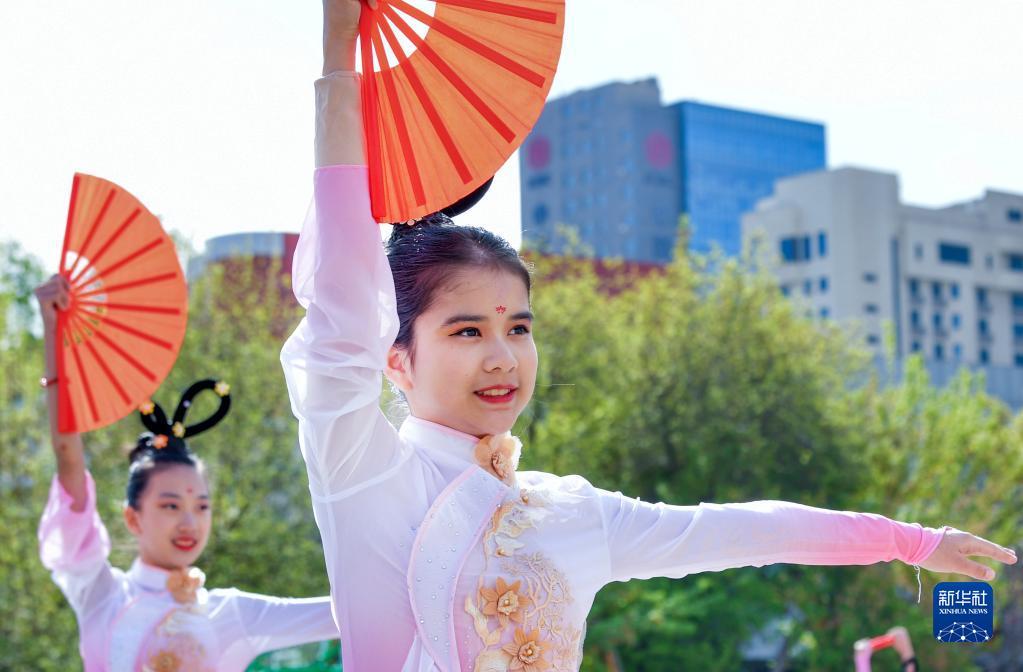 4月26日,学生在开幕式上展示街舞啦啦操。新华社记者 王菲 摄