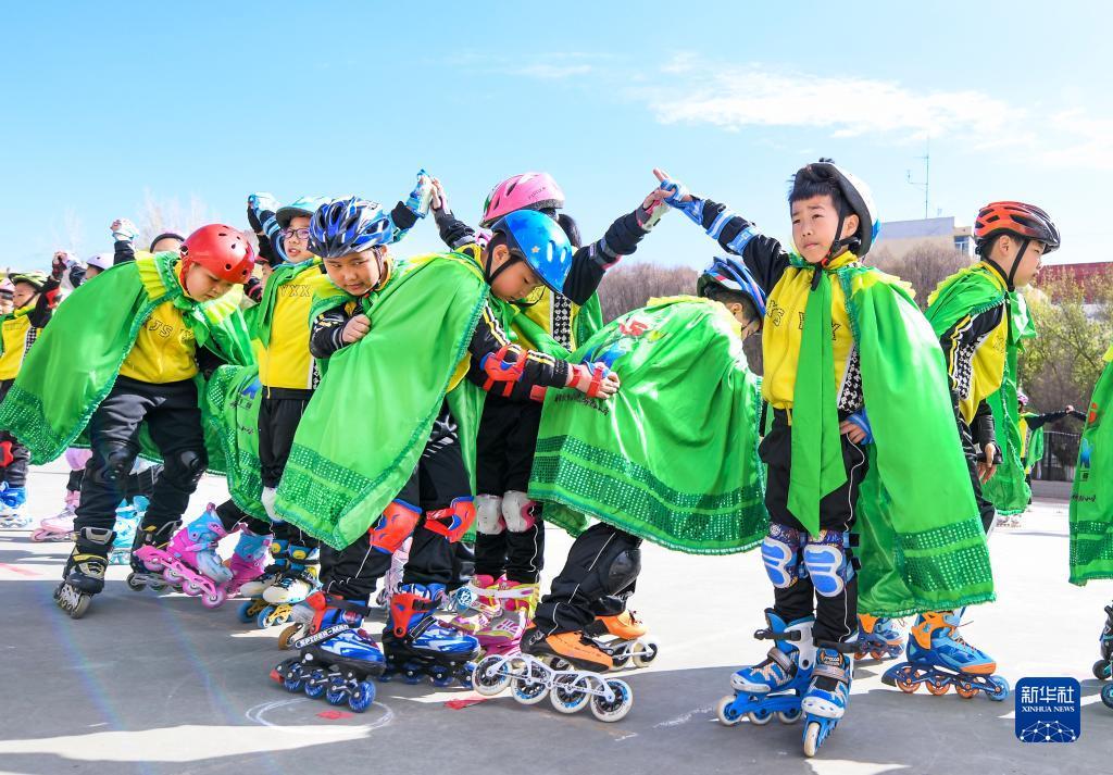 4月26日,学生在开幕式上展示轮滑。新华社记者 王菲 摄