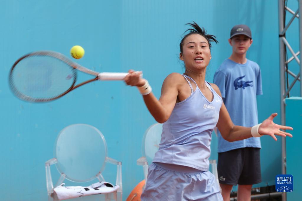4月28日,郑钦文在比赛中。新华社记者 孟鼎博 摄