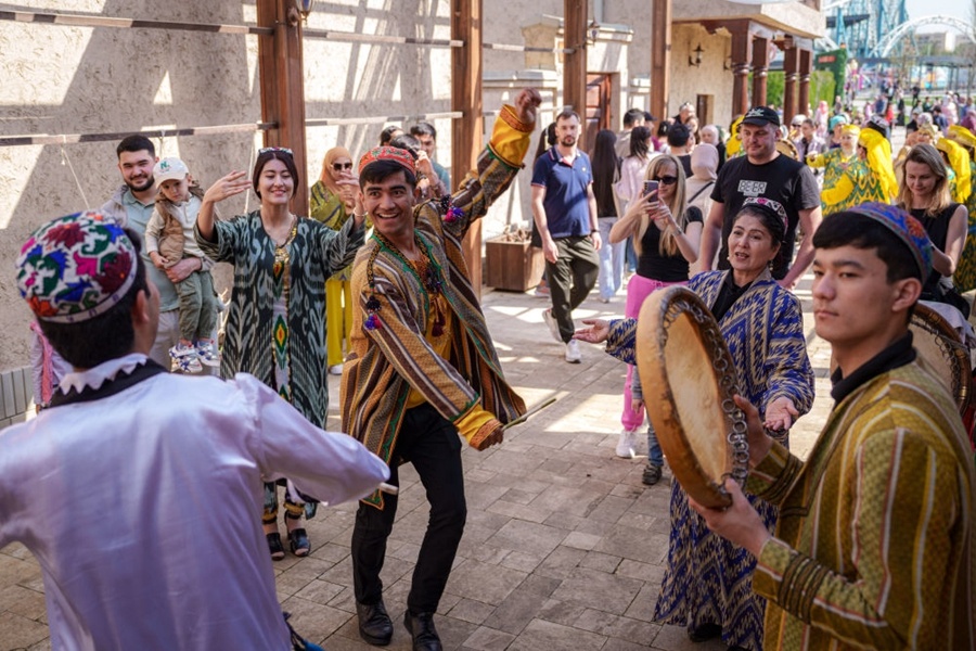 ↑人们在乌兹别克斯坦首都塔什干庆祝纳乌鲁斯节。