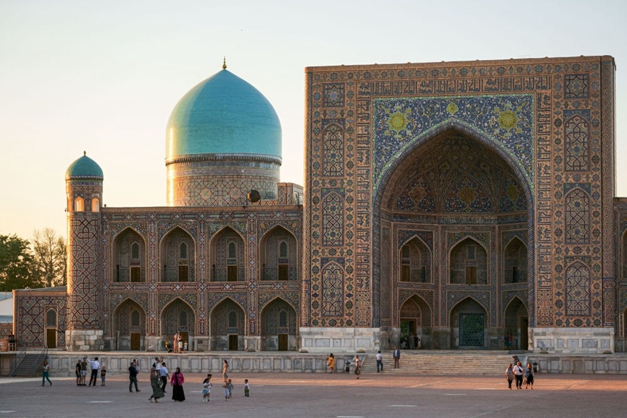 ↑乌兹别克斯坦撒马尔罕市列吉斯坦广场。