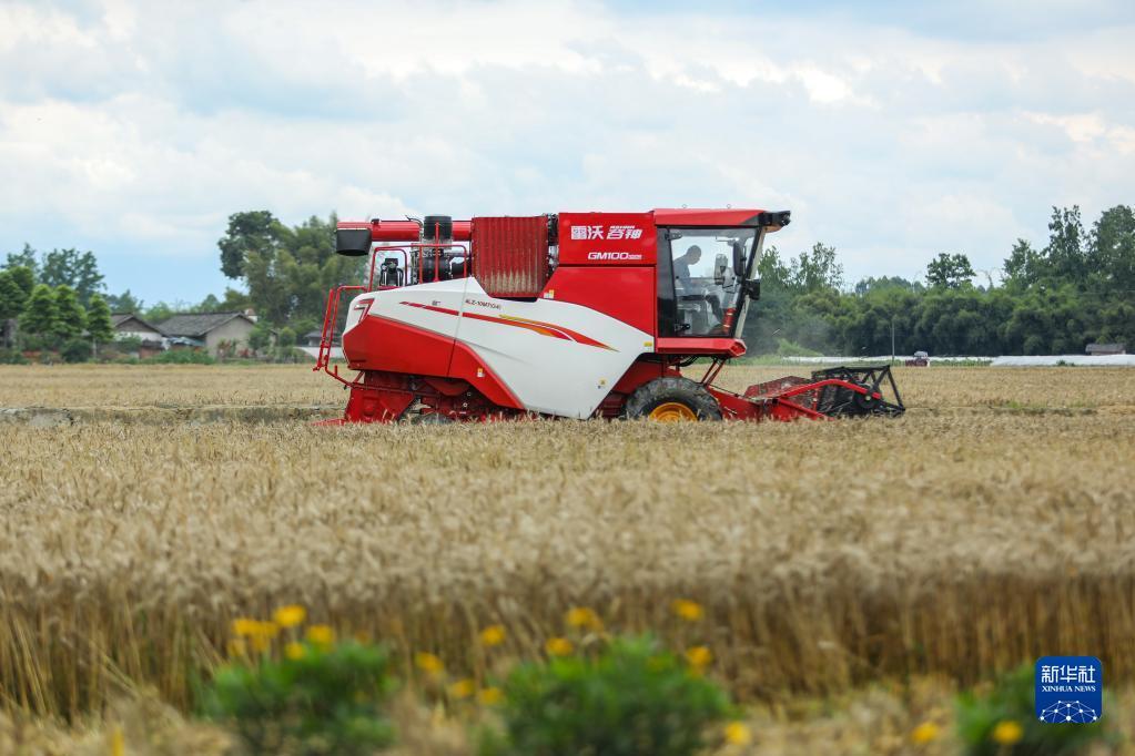 目前,四川省各地农民抢抓农时,进行夏收、夏种、夏管等作业。