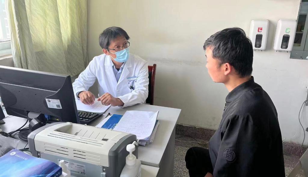 5月24日,青海省人民医院神经内科主任医师吉维忠(左)在接诊。(受访者供图)