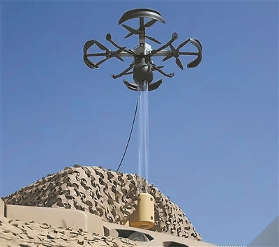 从本质上看,系留式无人机是一种特殊的多旋翼无人机。借助多旋翼,该无人机可以适时调整飞行姿态,不仅抗风性强,而且托举力大。通过与地面连接的线缆,系留式无人机可持续获得电力作为飞行动力,实现长时间滞空悬停。系留线缆中通常整合有光纤,以便把系留式无人机搭载的相关功能载荷获取的信息,迅速传递给武器装备指控装置,为后续任务提供情报支撑。