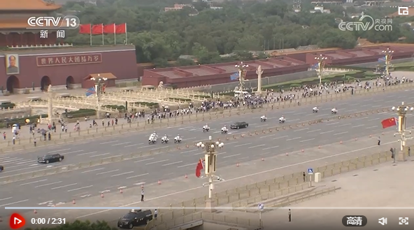 齐塞克迪在习近平陪同下检阅中国人民解放军仪仗队。