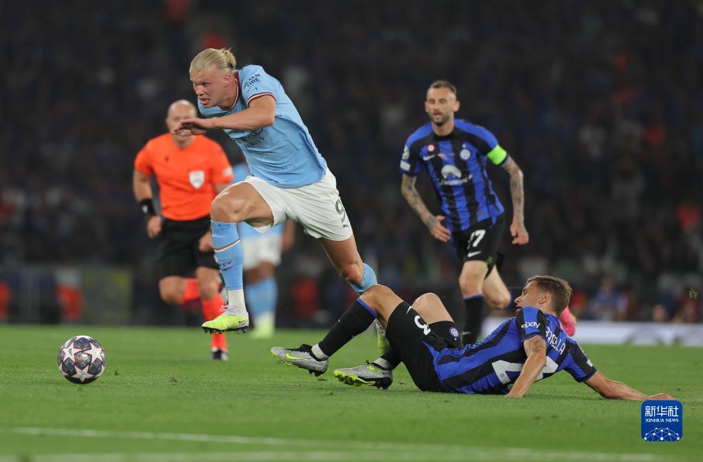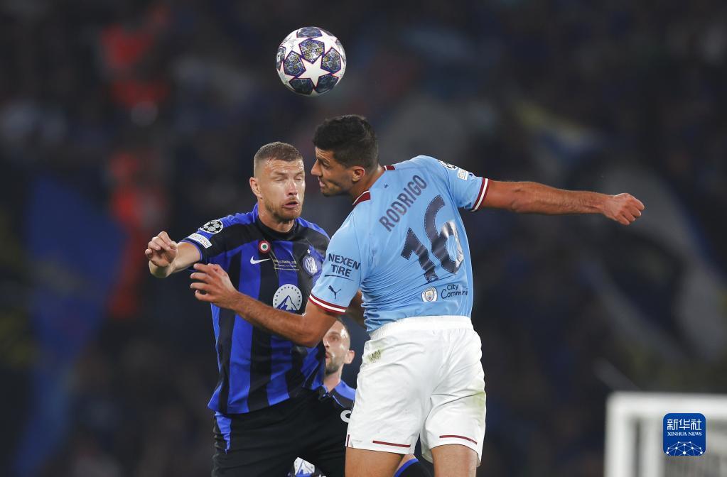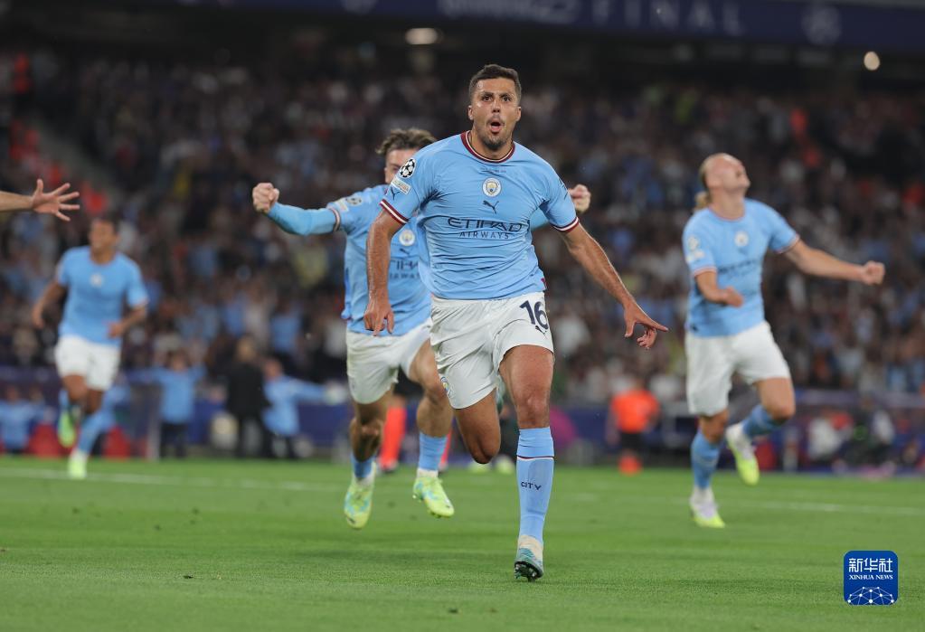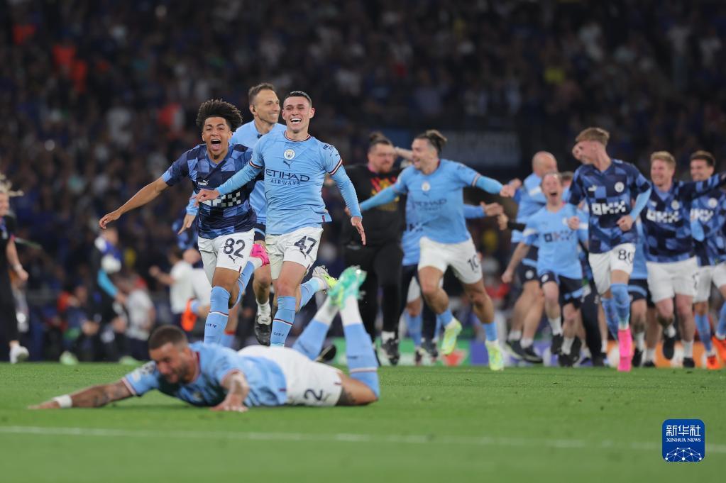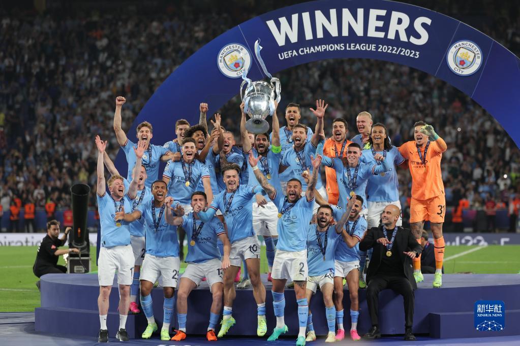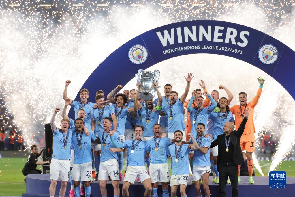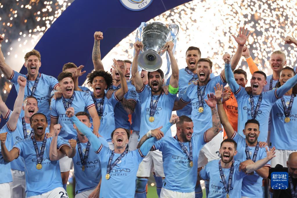 当日,在土耳其伊斯坦布尔举行的2022-2023赛季欧洲足球冠军联赛决赛中,英超曼彻斯特城队以1比0战胜意甲国际米兰队,夺得冠军。曼城队本赛季同时赢得欧冠、英超、足总杯冠军,成就“三冠王”。