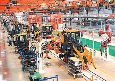 得益于RCEP协定生效,柳州工程机械海外订单量不断增多。图为6月2日,工人在广西壮族自治区柳州市柳工装载机灯塔工厂升级后的车间里赶制海外订单产品。 黎寒池摄(人民视觉)