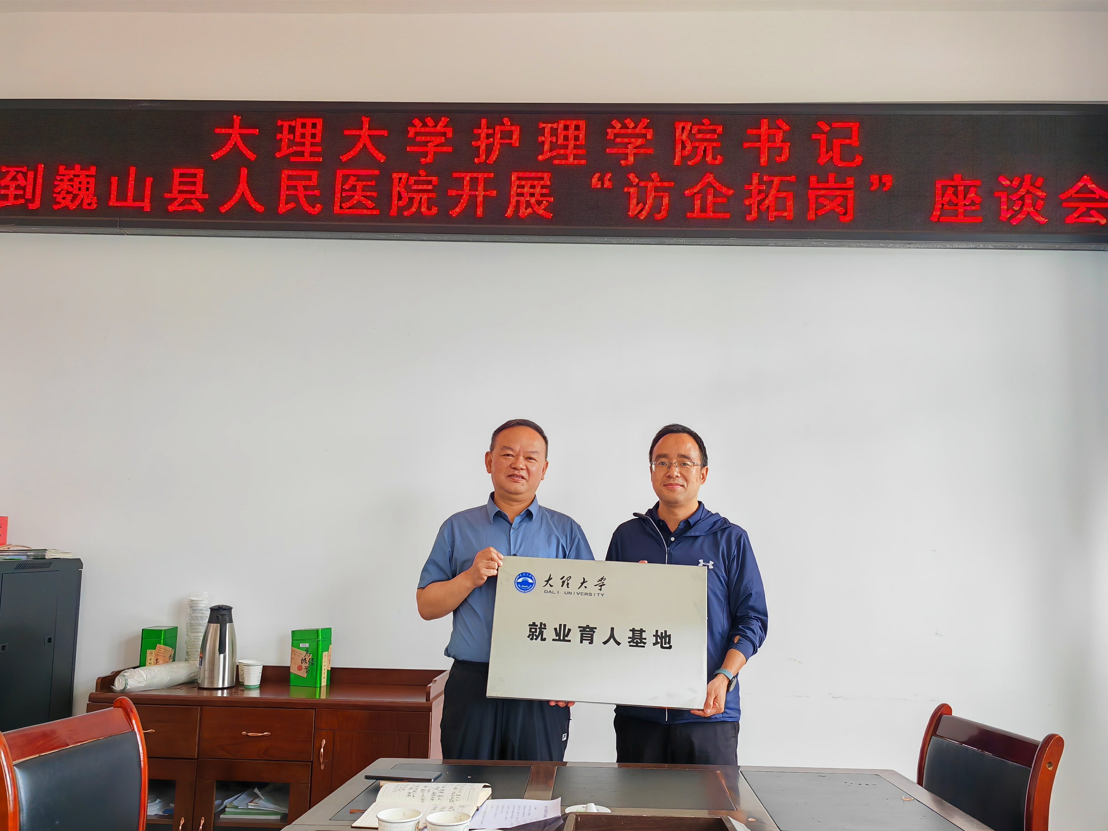 6月9日,大理大学护理学院分别与巍山县人民医院、县中医医院举行了“就业育人基地”落户授牌仪式。大理大学护理学院党委书记李松一行、县卫生健康局及相关医院负责人参加仪式。