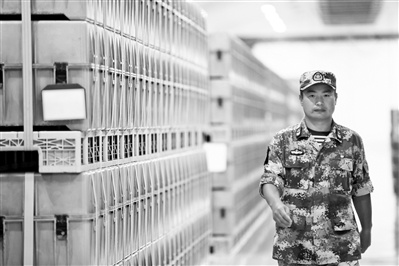 龙建昆在仓库巡逻。