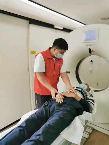 近期,楚雄州人民医院影像党支部带领CT室医务人员,携车载CT到楚雄市鹿城镇卫生院开展惠民义诊。胸外科专家李轶川为筛查出肺结节患者现场答疑解惑。此次义诊完成了55例患者的CT检查,车载CT为当地患者提供便利的体检服务。