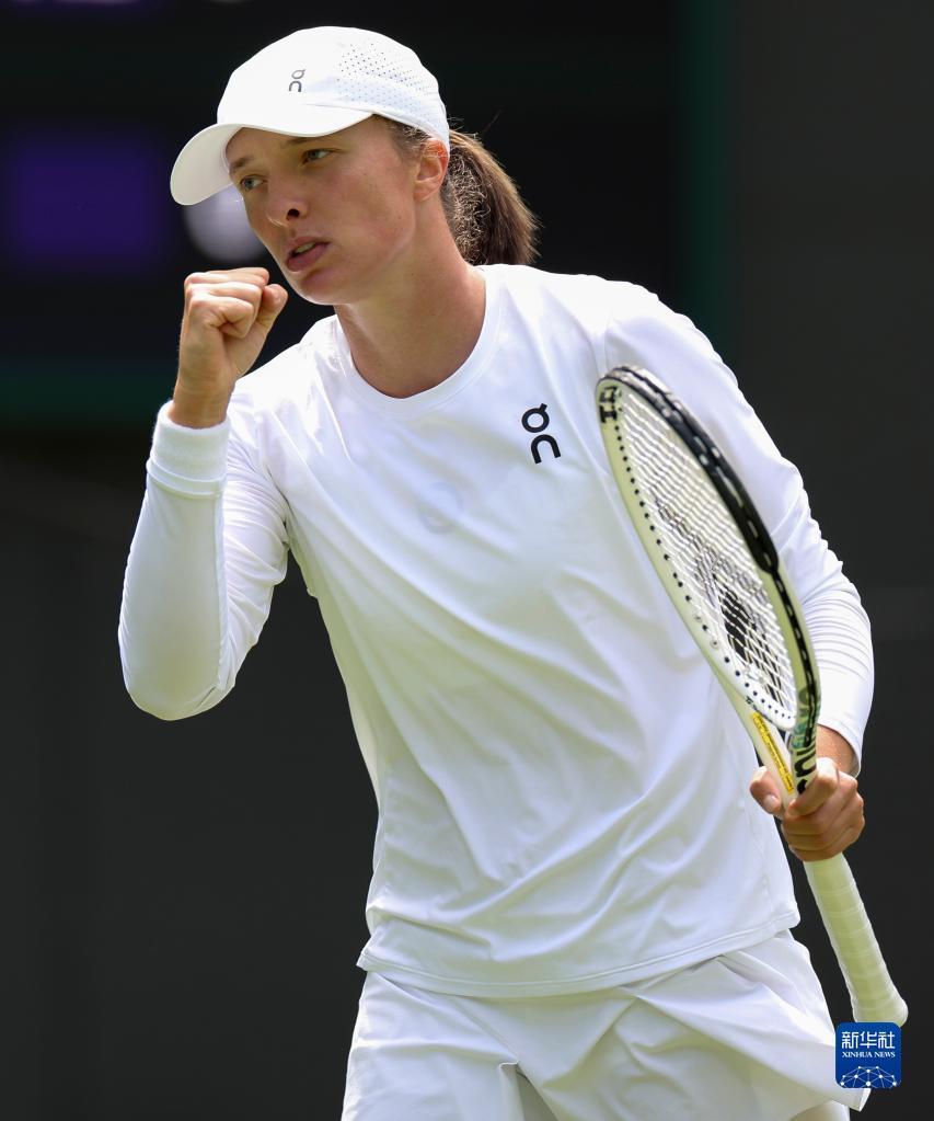 7月3日,斯维亚特克在比赛中庆祝得分。新华社记者 韩岩 摄