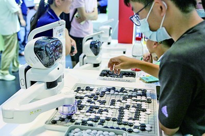 7月7日,元萝卜AI下棋机器人与观众对弈。新华社记者 辛梦晨摄