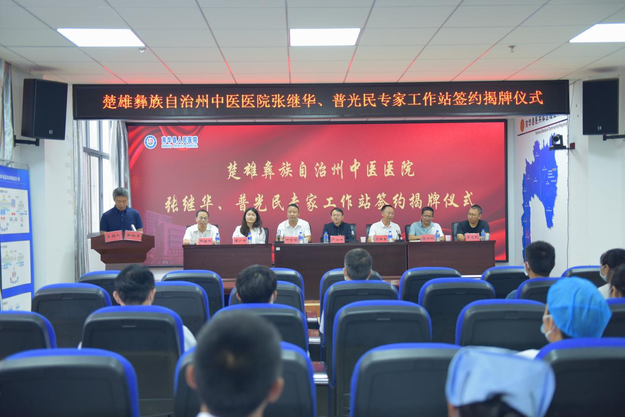 近日,楚雄州中医医院医学影像中心主任张继华、骨伤中心主任普光民2个中彝医专家工作站签约揭牌仪式在楚雄彝族自治州南华县人民医院举行。