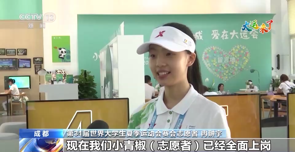 第31届世界大学生夏季运动会赛会志愿者 冉翀宇:现在我们小青椒(志愿者)已经全面上岗,我们将以热情周到、专业高效的志愿服务,与全球青年一起共享这场体育盛会,助力成都大运会的顺利举办。