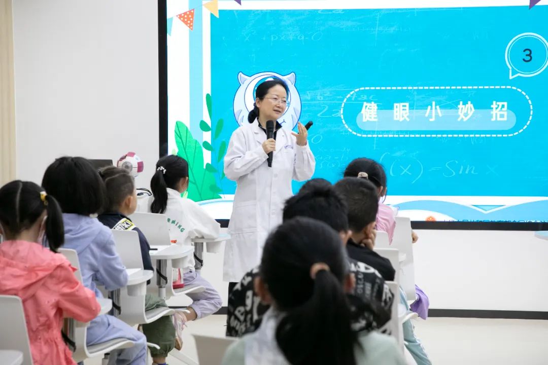 教育部全国儿童青少年近视防控专家宣讲团成员李丽红主任以身作则,以“爱眼护睛”为主题展开近视防控科普讲座,以“时间、姿势、场所”三大维度为脉络传授日常生活中的健眼小妙招。