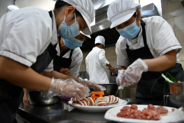 过油、下料、颠锅、调味、摆盘,灶台上火焰翻腾,每家参赛食堂都拿出了自己的看家本领。简单的食材在厨师们的快刀热锅中,完成了华丽蜕变。不一会儿,金丝虾球、西红柿红豆汤、海鲜菇炒鸡蛋、蔬菜鸡蛋糕、秘制水果山药等一道道色香味俱全的菜品就烧制完成,菜香四溢。