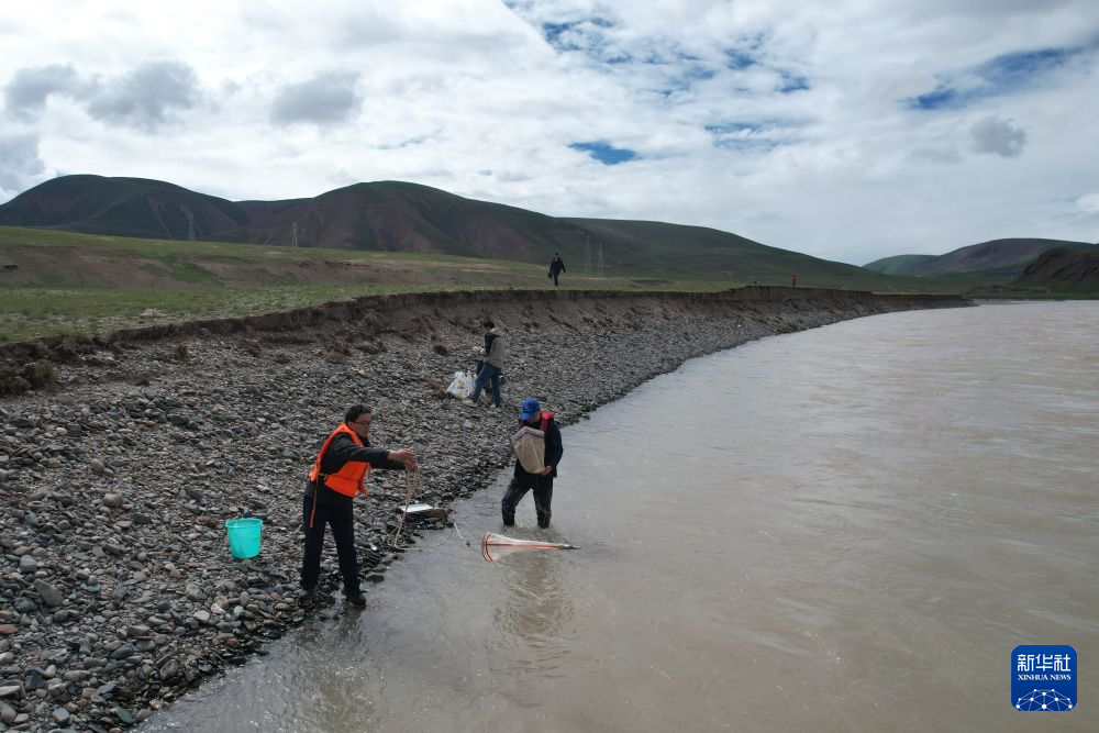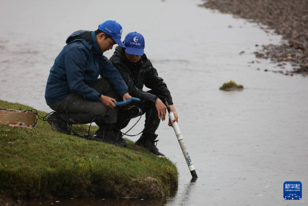 来自长江科学院河流研究所的科考队员徐志成和杨绪海,每到一个采样点就采集河道床沙和悬沙样品,测量河宽、水深、比降、流速,对比此前科考观测数据,分析长江源区河道水沙输移特性和河床演变情况。