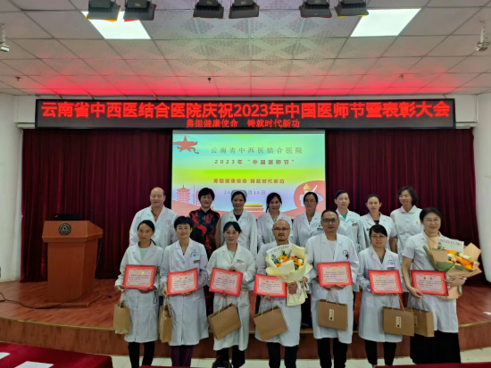8月18日下午,云南省中西医结合医院还组织召开了庆祝2023年“中国医师节”表彰大会,对在系列活动中涌现出来的19名优秀的医务人员进行了表彰。通过表彰,展示了医务工作者救死扶伤、爱岗敬业、乐于奉献、文明行医的精神风貌,激励优秀青年医务工作者脱颖而出,鼓励中年医务工作者承上启下,发挥骨干作用,更好地服务患者,促进卫生事业更上一个台阶。