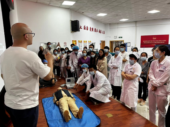 8月4日上午,云南省中医医院急诊科对云南省中西医结合医院140余名医务人员、实习生进行了徒手心肺复苏、除颤仪的使用等“三基”知识培训。并对急诊科10余名医护人员按照“成人徒手心肺复苏及除颤仪考核”标准进行了考核。通过此次培训,医院全体医、技、药人员巩固了正确有效的心肺复苏手法,提高了应急能力,加强了基础质量管理,强化了全院医务人员“三基三严”训练。
