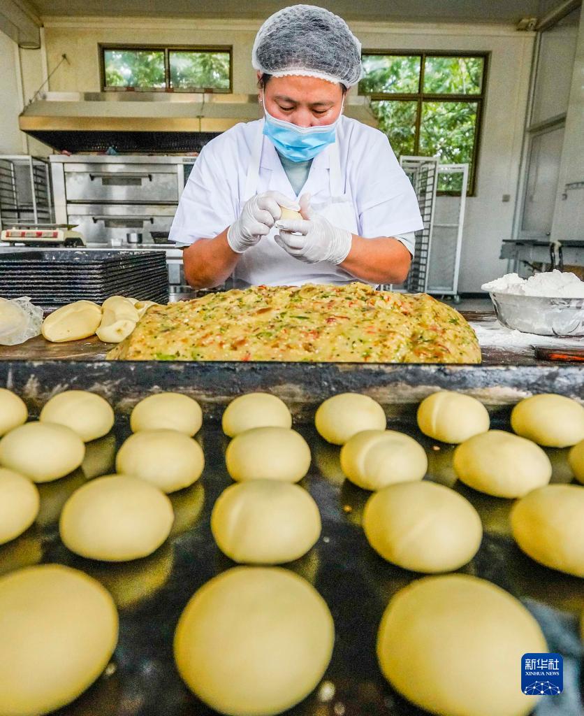 9月20日,在云南省马关县一家食品加工企业,工人制作传统月饼。
