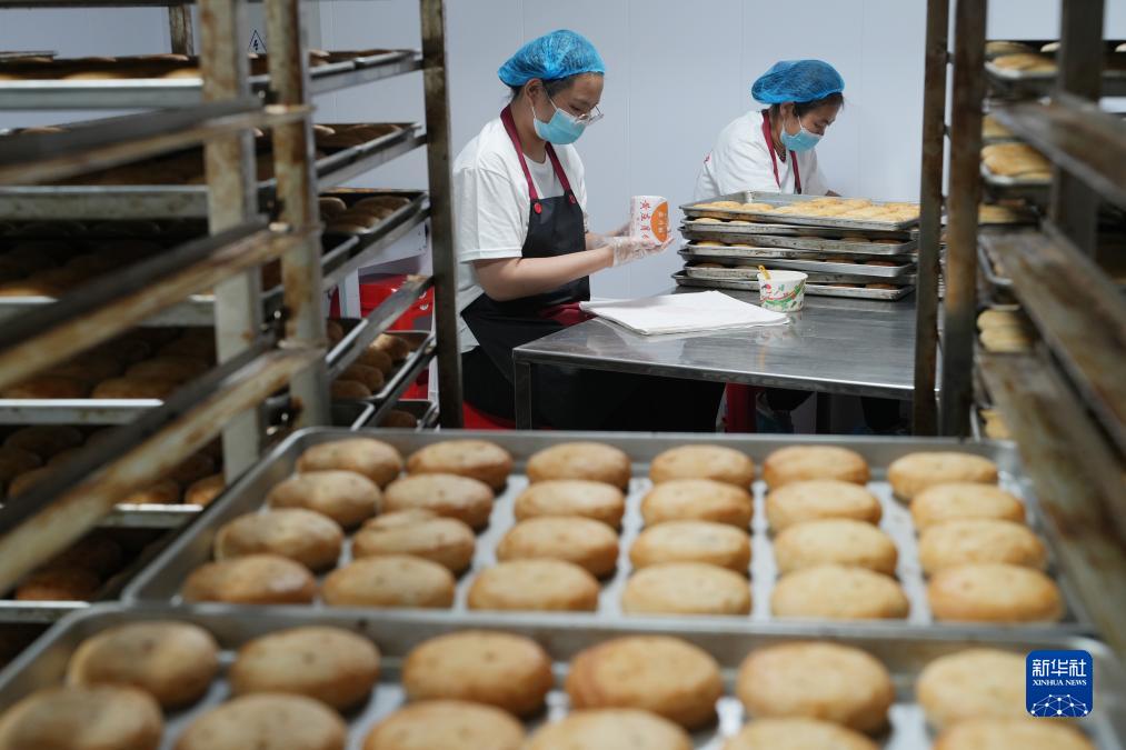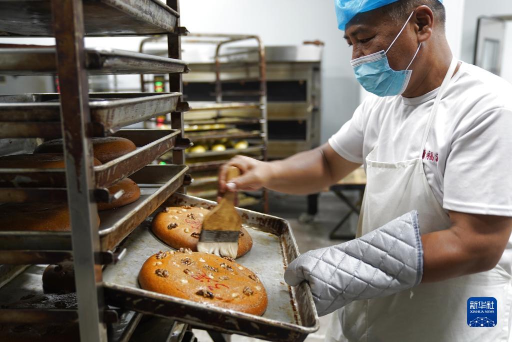 9月20日,在河北省石家庄市井陉县天长镇的一家手工月饼作坊里,老师傅准备烤制月饼。