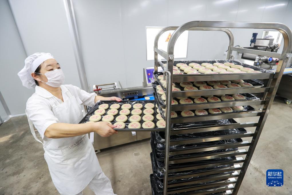 中秋节临近,各地月饼加工企业忙着生产月饼,供应节日市场。