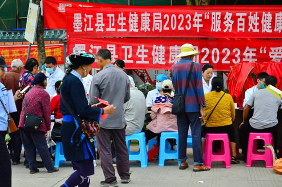 在义诊现场,一大早,由墨江县人民医院、县中医医院等医院内科、外科、眼科、牙科、中医科、老年病科等科室组成的专家义诊团队来到墨江县城龙泉夜市大门前,为市民提供免费量血压、测血糖、火罐、针灸、推拿按摩、老年病健康检查等医疗服务。同时,专家们根据市民的现场检查结果提供健康咨询及用药指导,普及医学常识和健康知识,积极引导居民养成健康生活方式,把健康服务直接送到了百姓身边。