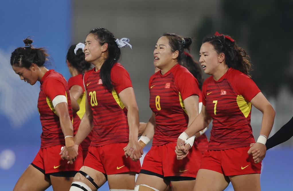 当日本选手冲向中国队的达阵区时,陈可怡像一道红色闪电疯狂回追,刹那间将球踢出底线。中国队赢了!