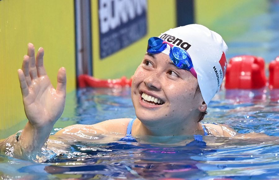 9月26日,中国香港名将何诗蓓以52秒17打破女子100米自由泳亚洲纪录并夺冠,这也是她本届赛事的第二枚金牌。