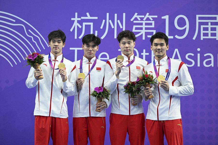 9月26日,在杭州亚运会男子4×100米混合泳接力决赛中,中国队夺得金牌,同时以3分27秒01的成绩刷新亚洲纪录。