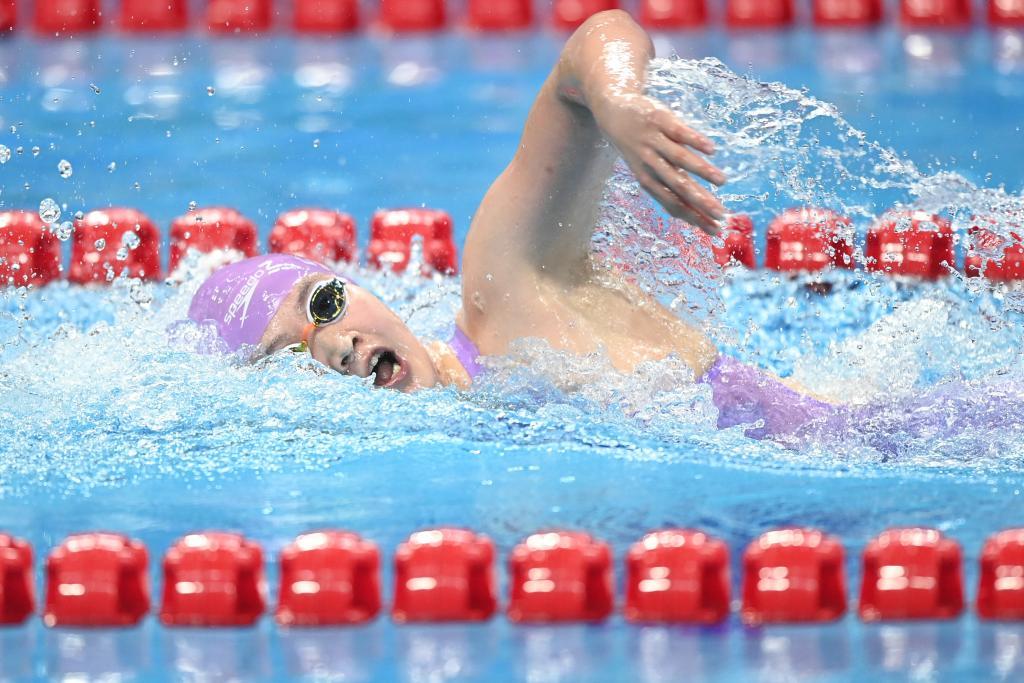 9月24日,中国队选手李冰洁以15分51秒18破赛会纪录的成绩摘得女子1500米自由泳金牌。