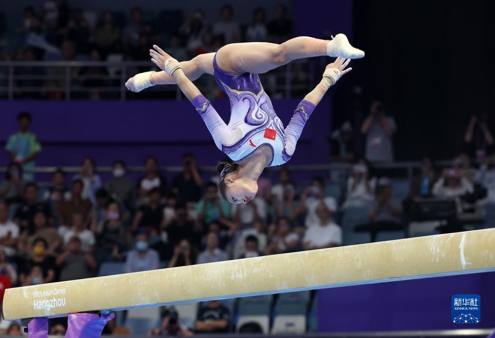 当日,在浙江杭州黄龙体育中心体育馆举行的杭州亚运会竞技体操女子全能决赛中,中国选手左彤以总得分53.565分的成绩夺得冠军,日本选手冈村真获得亚军,朝鲜选手金水晶获得季军。