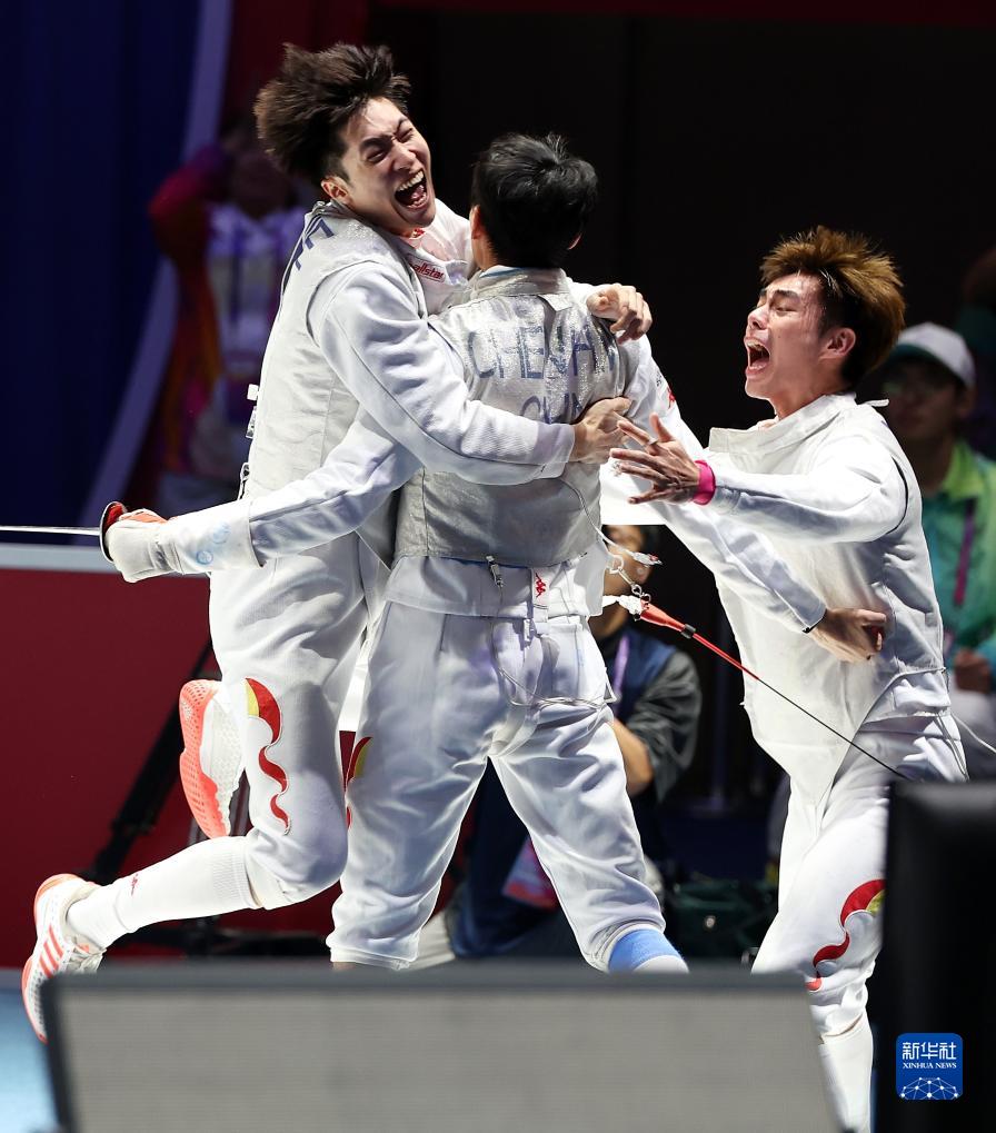 当日,在杭州亚运会击剑项目男子团体花剑半决赛中,中国队以45比44战胜日本队,晋级决赛。