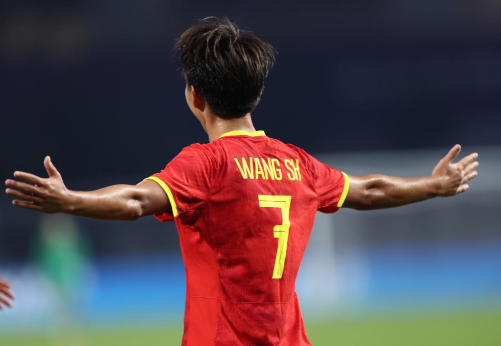 9月30日,中国队球员王霜在进球后庆祝。新华社记者 兰红光 摄