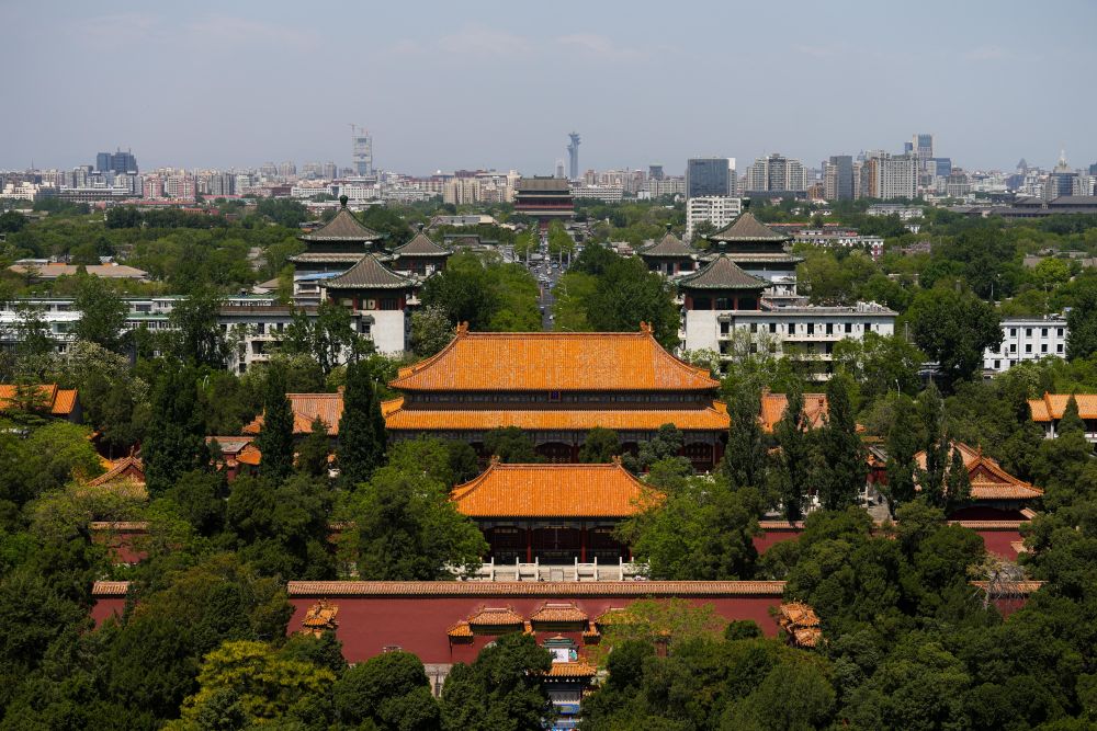 在景山公园上拍摄的北京中轴线风光(4月29日摄)。新华社记者 鞠焕宗 摄