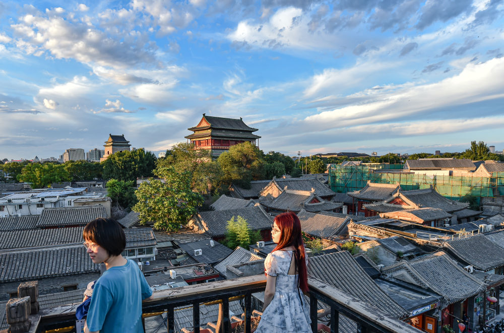 人们在北京什刹海附近咖啡厅露台欣赏风景(6月10日摄)。新华社记者 陈钟昊 摄