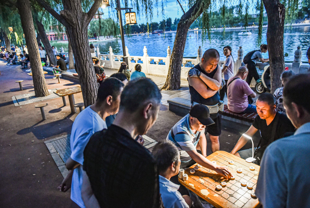 市民在北京什刹海边下棋(6月10日摄)。新华社记者 陈钟昊 摄