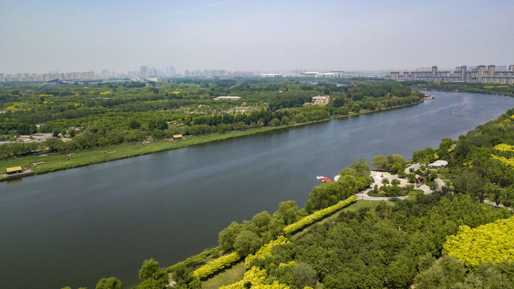 位于北京城市副中心的大运河森林公园(5月9日摄,无人机照片)。新华社记者 鞠焕宗 摄