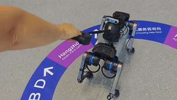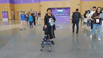 ↑此前亚运会上传递铁饼的机器狗与火炬传递中的智能导盲犬都来自杭州宇树科技有限公司。