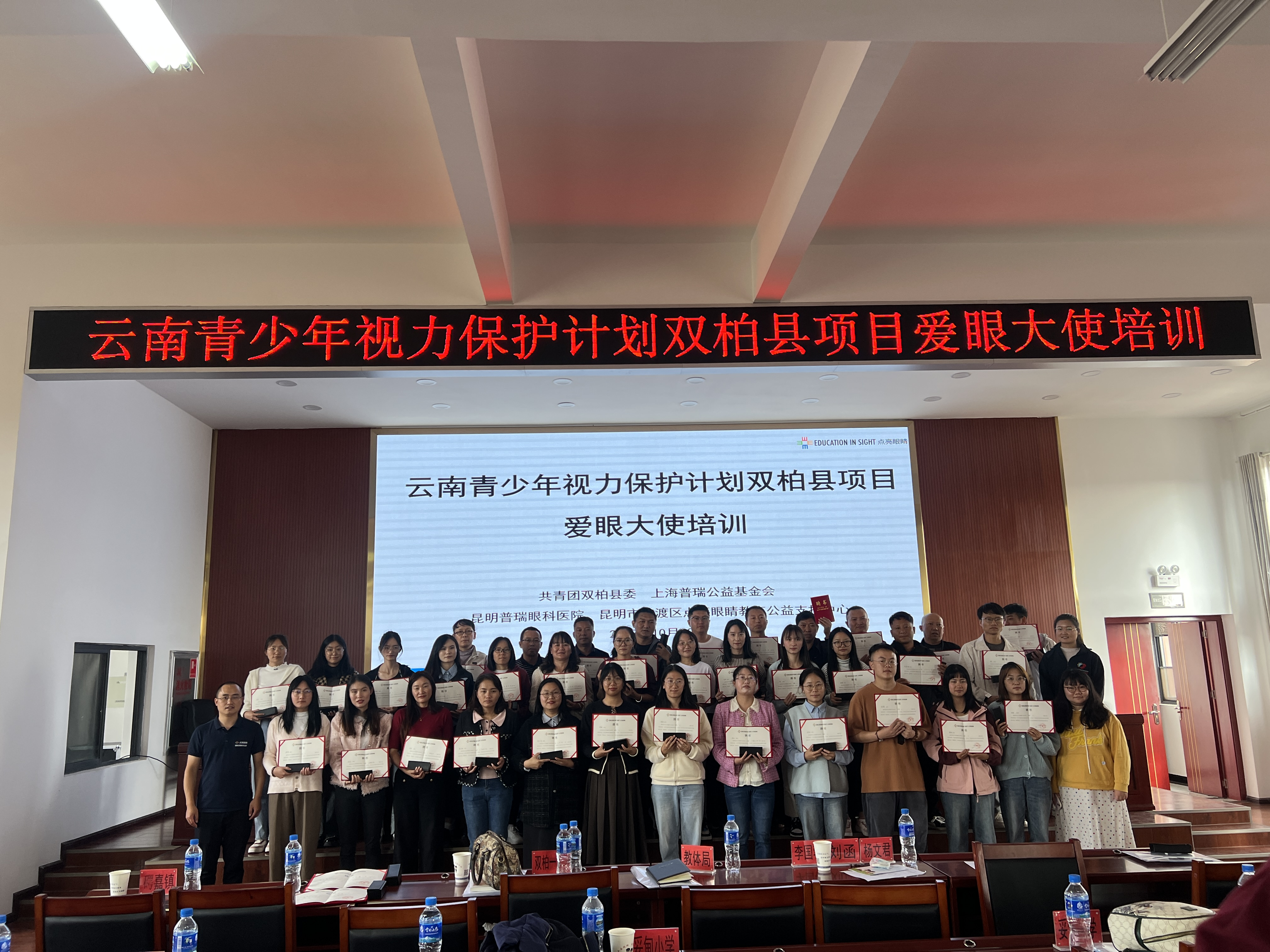 培训结束后,为成绩合格的老师颁发了爱眼大使证书,按照双柏县项目计划,爱眼大使们将在所属学校定期开展近视防控培训,并为本校学生进行视力初筛。