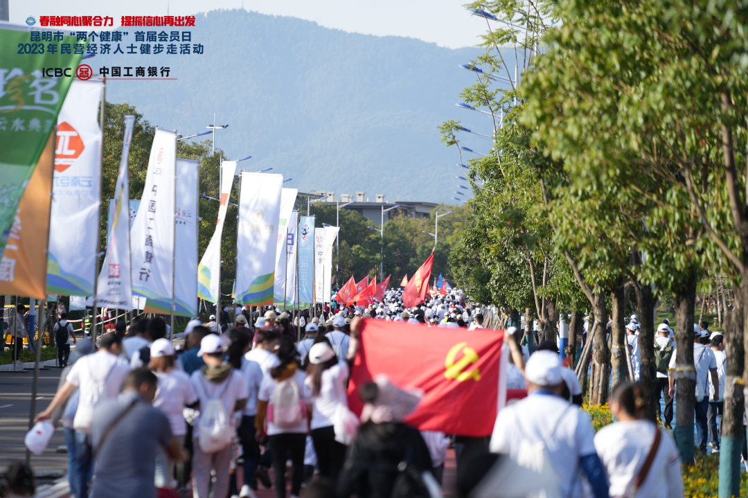 10月28日上午,在昆明市深入学习贯彻党的二十大精神、全面落实《中共中央国务院关于促进民营经济发展壮大的意见》和全省民营经济高质量发展大会精神,奋力“当好排头兵”、加快建设“六个春城”的关键时刻,昆明市“春融同心聚合力,提振信心再出发——‘两个健康’会员日——2023年健步走活动”在昆明市草海隧道湿地公园成功举办。